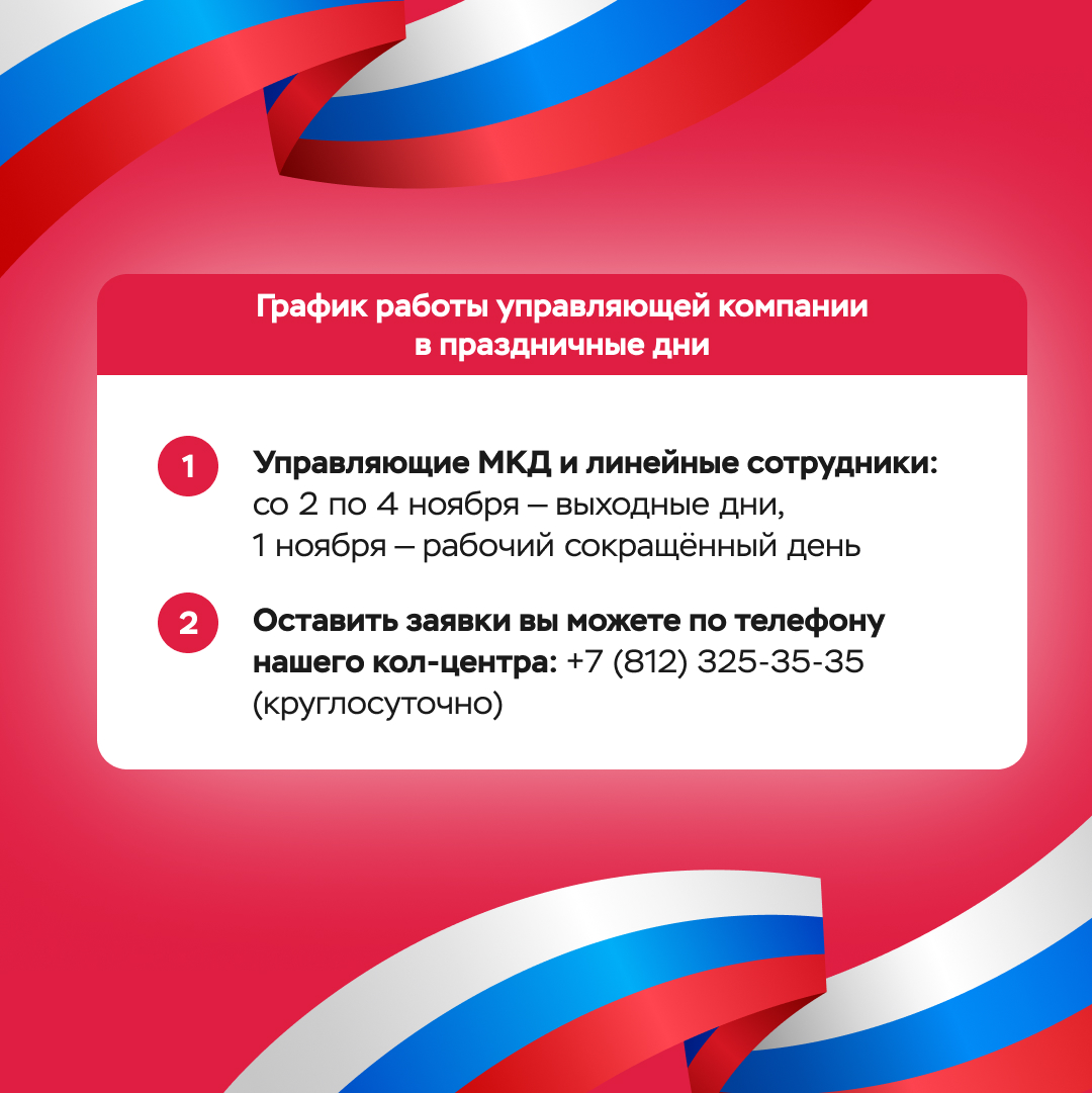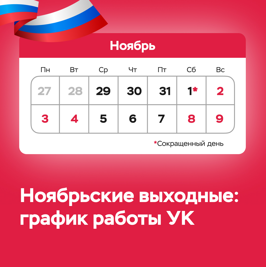 Офисы управляющей компании будут закрыты со 2 по 4 ноября.