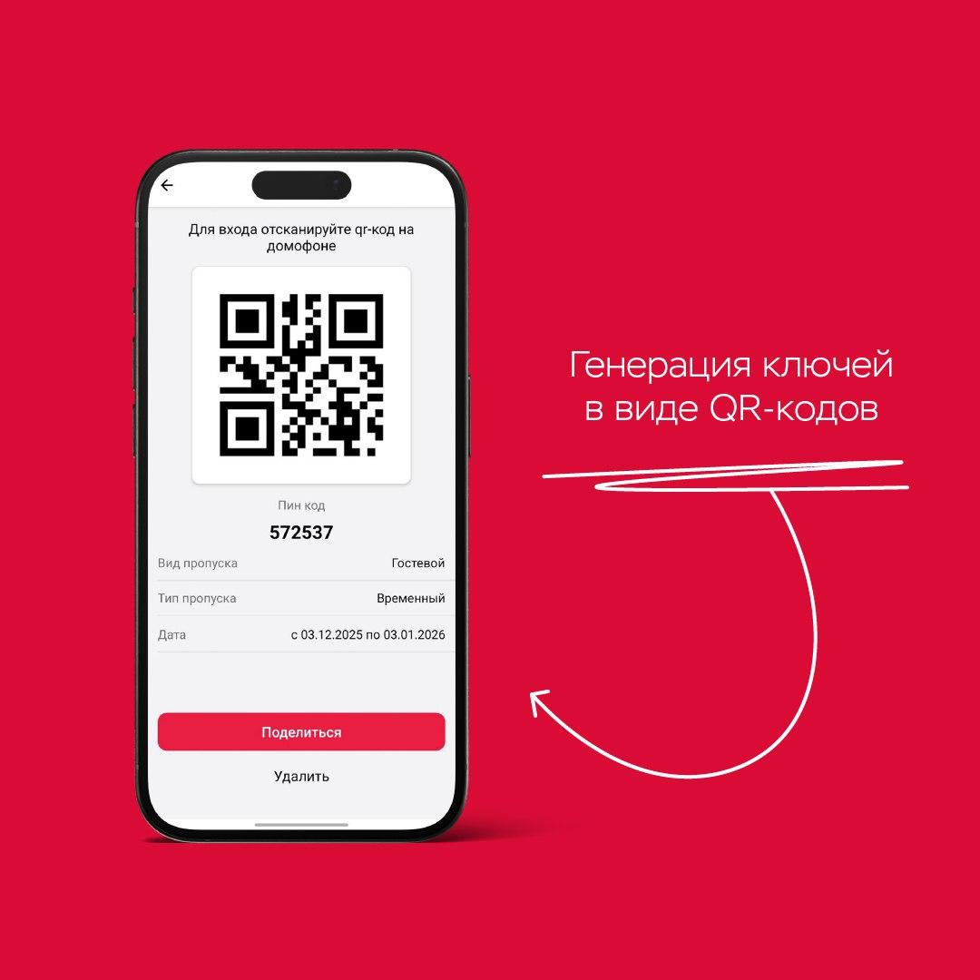 Вызывные панели могут считывать специальные пропуска в виде QR-кодов. Их можно сгенерировать в мобильном приложении «ЛСР». Пришлите QR-код гостям, и они смогут зайти в подъезд.