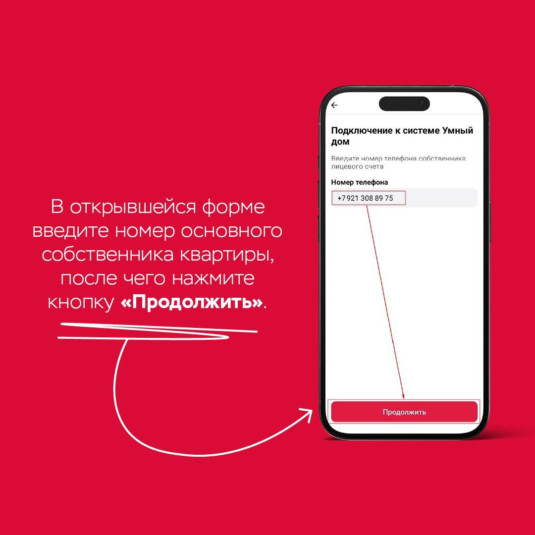 В появившемся поле нужно ввести номер телефона основного собственника квартиры. Обратите внимание: телефон основного собственника необходимо вводить точно так, как было указано в акте приёма-передачи квартиры.